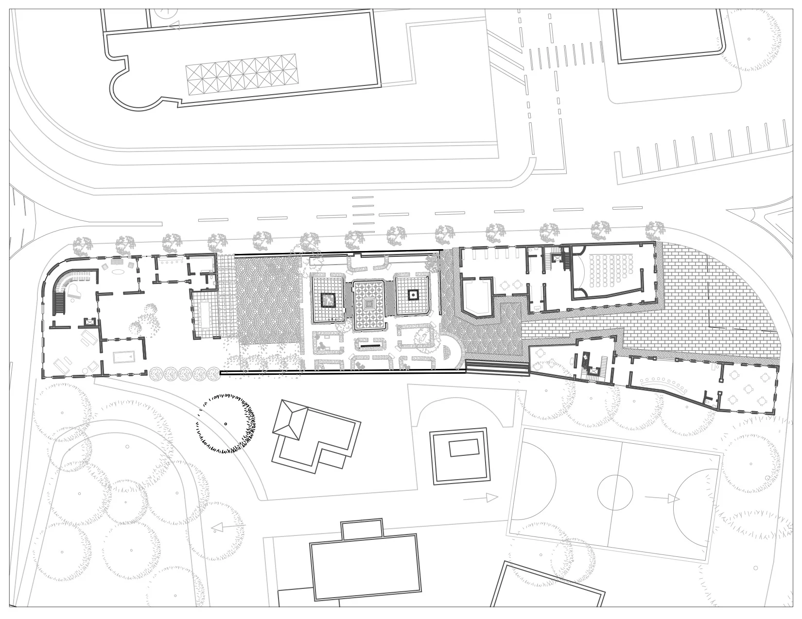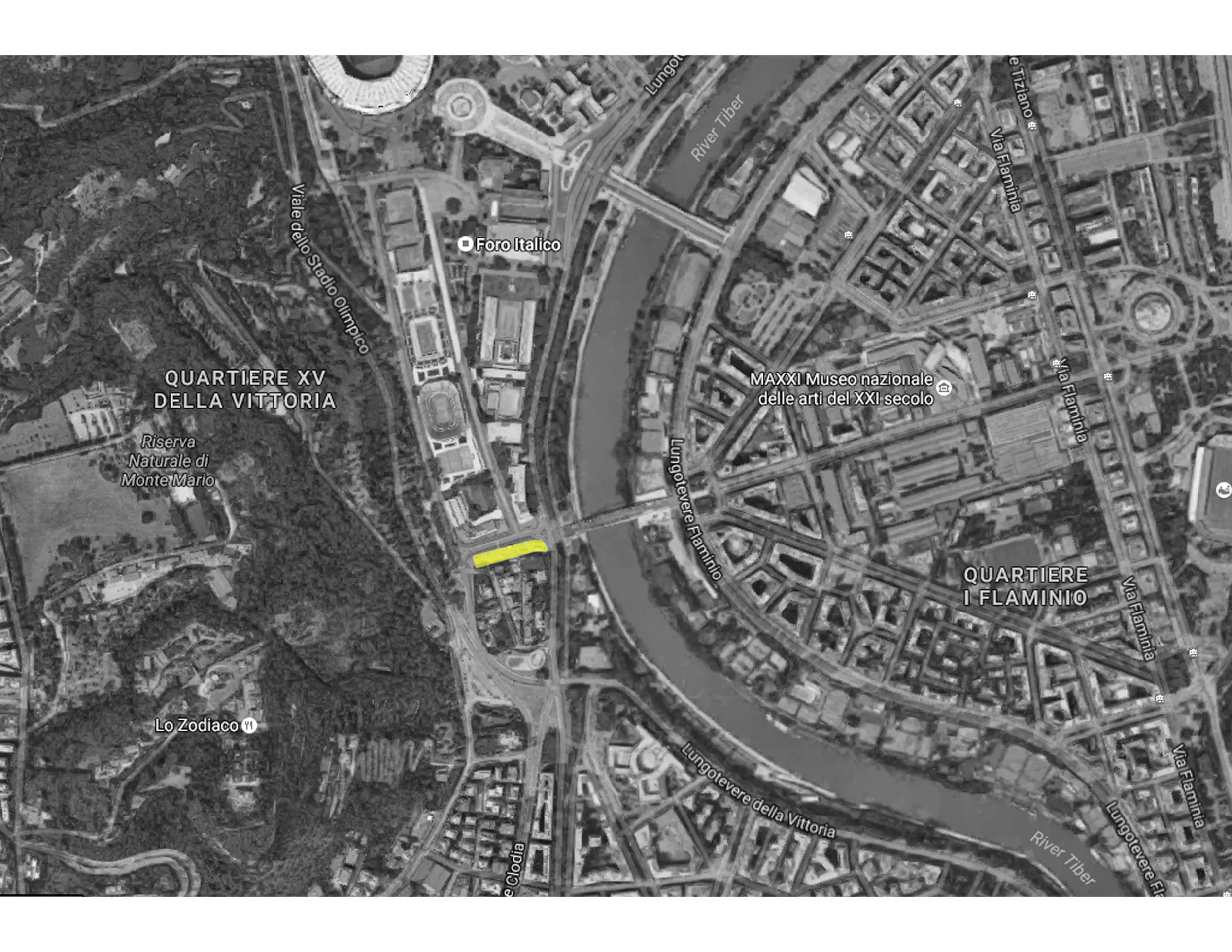 The design features two access points based on the axes from the two adjacent important public spaces. The main and longer axis follows that of the Ponte della Musica by Armando Trovajoli and serves as the main entry point. The secondary axis is from that of the Foro Itlaico and provides an alternate entry point along a prominent bus route.