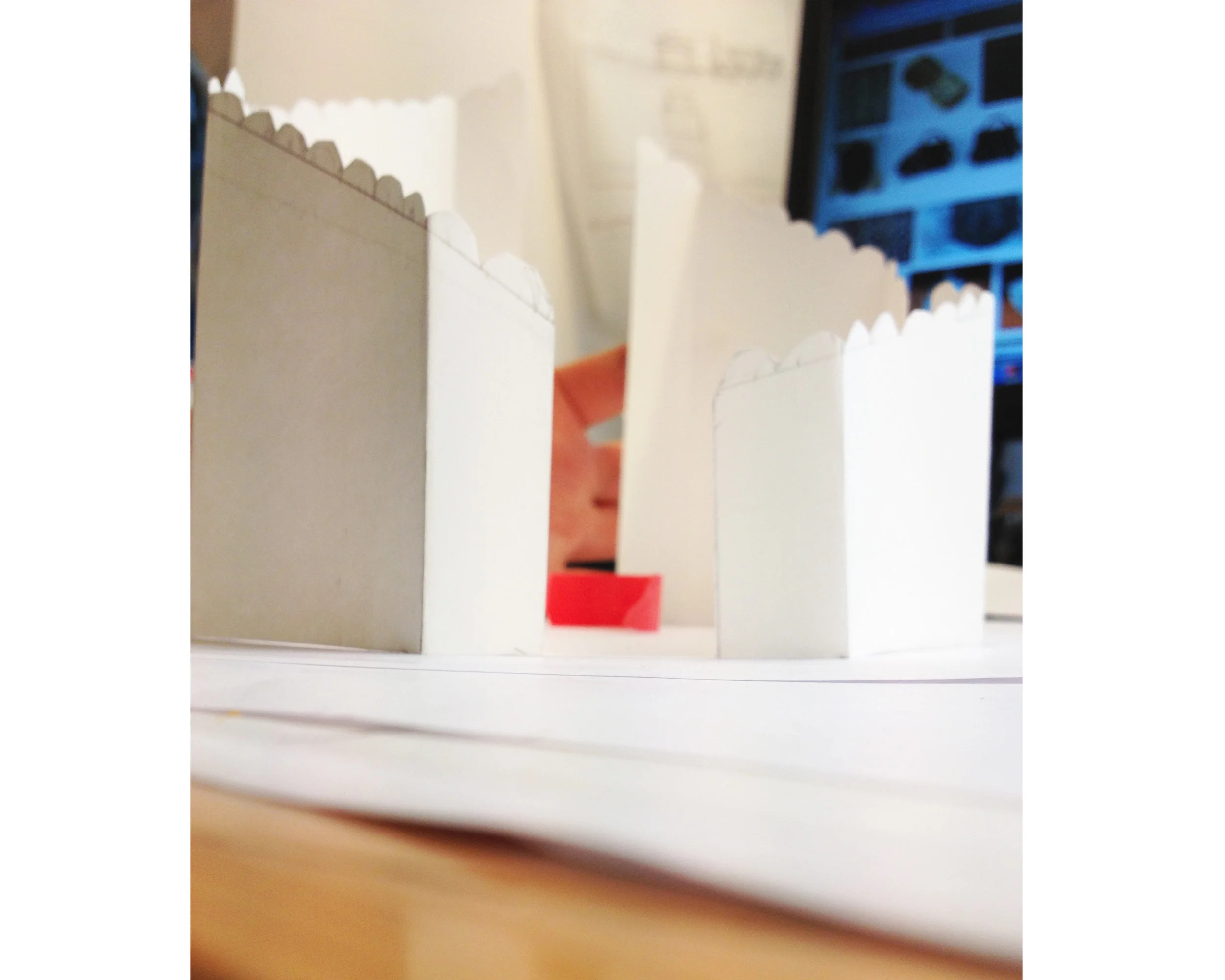 Though resources were limited in Rome (where this project was designed), physical models made out of medium weight paper helped determine the proportion and height of the screens.